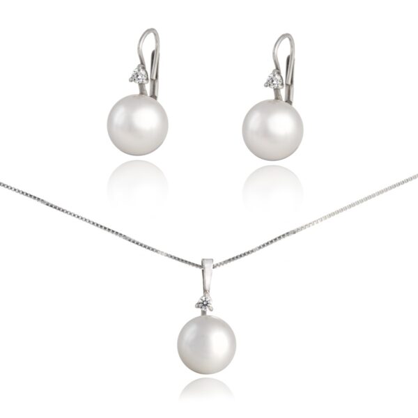 Stříbrná souprava s perlou Swarovski® 10mm a zirkonem