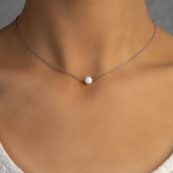 Stříbrný náhrdelník s kuličkou z bílého opálu