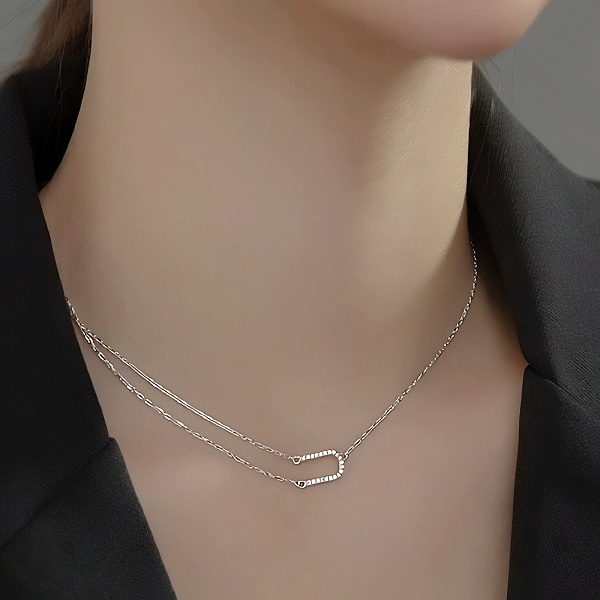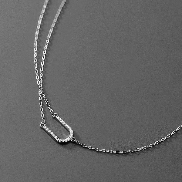 Stříbrný dvojitý náhrdelník položené U se zirkony