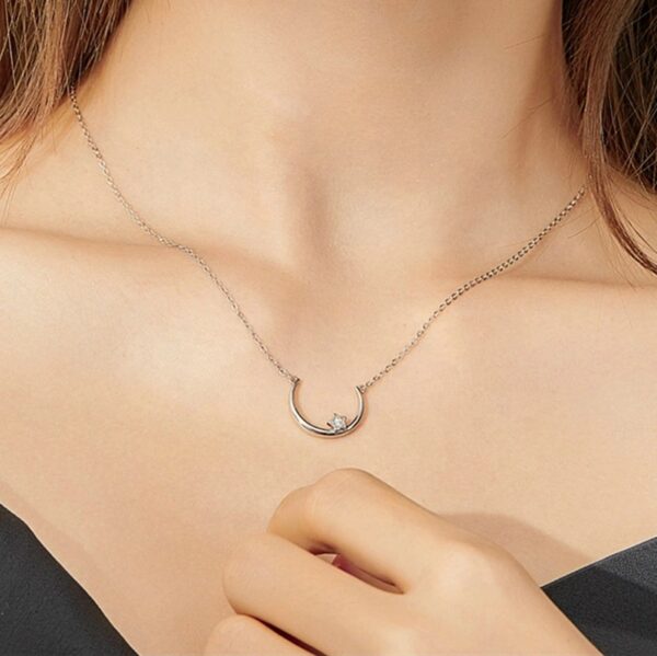 Stříbrný náhrdelník půlměsíc s hvězdičkou a zirkonem