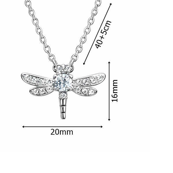 Stříbrný náhrdelník vážka se zirkony – třpytivý šperk pro každou příležitost. Zahalte se do elegance s tímto elegantním stříbrným náhrdelníkem ryzosti 925/1000, jehož jemná vážka je osazena jasnými čirými zirkony, které zachycují světlo z každého úhlu. Perfektní kombinace moderního designu a klasické kvality. Dopřejte si nadčasový stříbrný šperk, který okamžitě zvýrazní váš styl a podtrhne osobnost. Perfektní pro každodenní nošení i slavnostní příležitosti. Velikost vážky je š,20mm v.16mm, délka náhrdelníku je 40+5cm prodlužovací řetízek. Dodáváme v naší originální krabičce. Díky rhodiovanému povrchu má náhrdelník nejen oslnivý vysoký lesk, ale také výrazně vyšší odolnost proti zčernání, poškrábání a opotřebení.