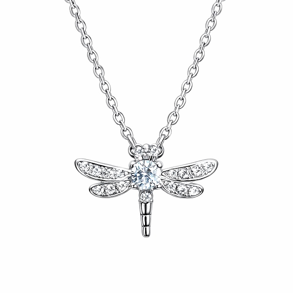 Stříbrný náhrdelník vážka osazená čirými zirkony