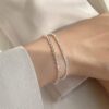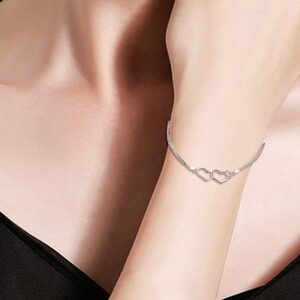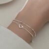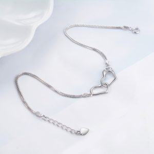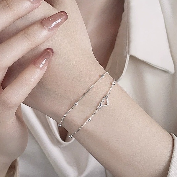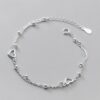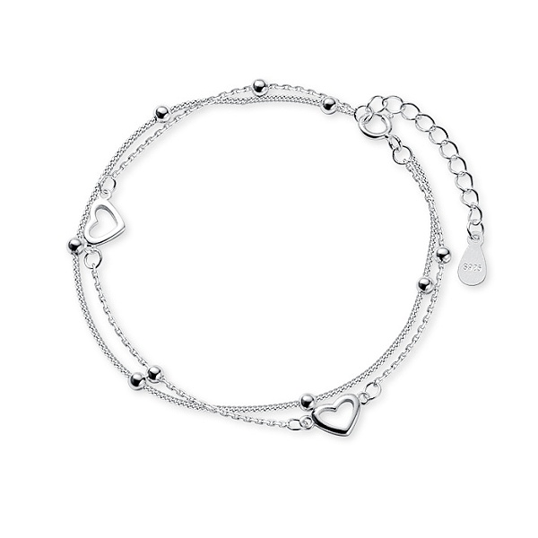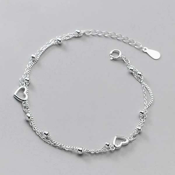 Stříbrný dvojitý náramek ze dvou typů řetízků zdobený srdíčky a kuličkami