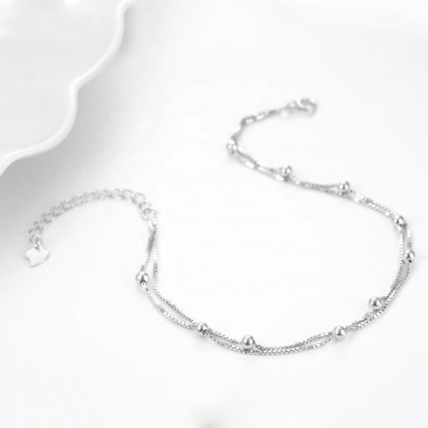 Stříbrný dvojitý náramek na nohu s kuličkami