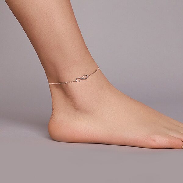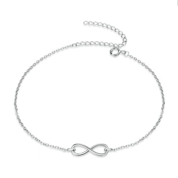 Stříbrný náramek na nohu 925/1000 – Infinity, rhodiovaný. Velice moderní a jemný náramek. Velikost 20 cm + prodlužovací řetízek 5 cm. Zapínání na pérový kroužek. Dodáváme v naší originální krabičce. Rhodium dodává výrobku vzhled luxusního zboží podobný bílému zlatu a zároveň chrání stříbro před jeho přirozenou oxidací (tzv.zčernání).