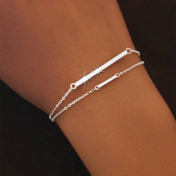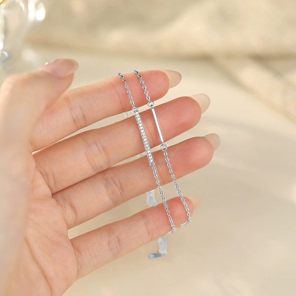 Stříbrný dvojitý náramek s tyčkou a řadou zirkonů