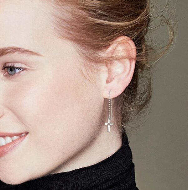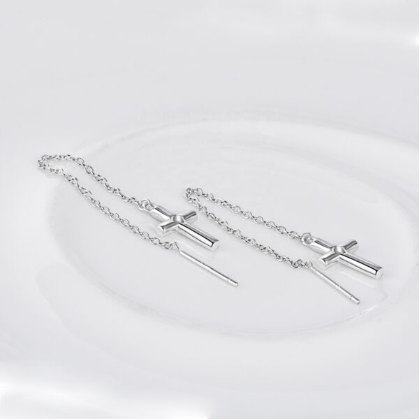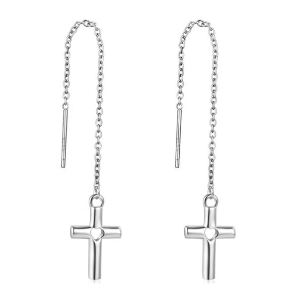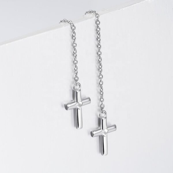 Stříbrné rhodiované náušnice 925/1000 – protahovací s křížkem. Rozměr náušnic – rozměr křížku 7x14mm,celková délka náušnice 75mm včetně křížku. Dodáváno v naší originální krabičce. Rhodium dodává výrobku vzhled luxusního zboží podobný bílému zlatu a zároveň chrání stříbro před jeho přirozenou oxidací (tzv.zčernání).