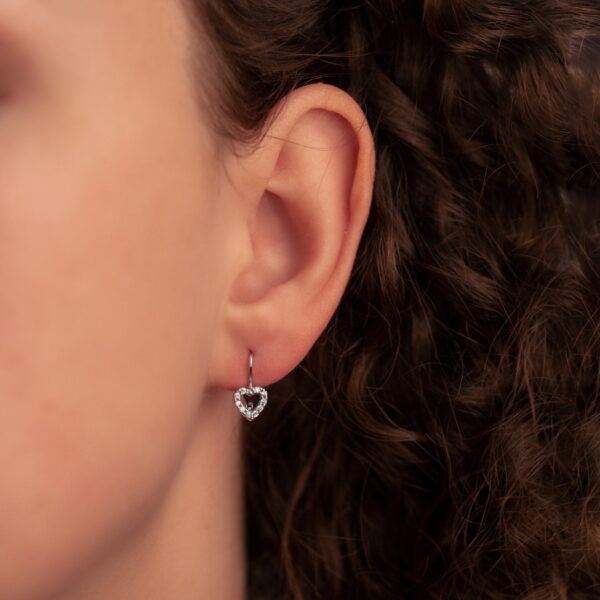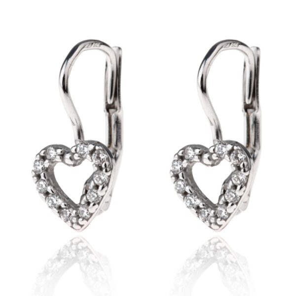 Stříbrné rhodiované náušnice 925/1000 – ve tvaru srdíček s jemnými zirkony. Velice elegantní a oblíbený dětský model. Zapínání na menší dětskou klapku. Rozměr srdce 6,5 x 6,5mm. Celkový rozměr náušnice 6,5 x 14mm včetně klapky. Dodáváno v naší originální krabičce. Rhodium dodává výrobku vzhled luxusního zboží podobný bílému zlatu a zároveň chrání stříbro před jeho přirozenou oxidací (tzv.zčernání).