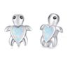 Stříbrné dětské rhodiované náušnice 925/1000 – želvičky se syntetickým opálem a černými zirkonky. Zapínání na šroubek. Rozměr náušnic š.8mm, v.9,3mm. Dodáváno v naší originální krabičce. Rhodium dodává výrobku vzhled luxusního zboží podobný bílému zlatu a zároveň chrání stříbro před jeho přirozenou oxidací (tzv.zčernání).