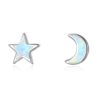 Stříbrné náušnice hvězdička a měsíček se syntetickým opálem