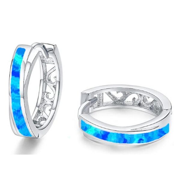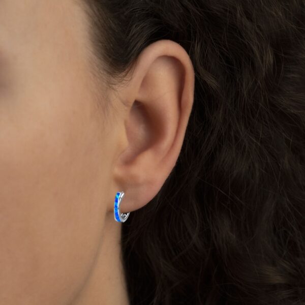 Stříbrné rhodiované náušnice kroužky ryzosti 925/1000 s modrým syntetickým opálem. Velice elegantní model. Zapínání na zaklapnutí. Rozměr kroužku – Ø15mm, š.3mm. Dodáváno v naší originální krabičce. Rhodium dodává výrobku vzhled luxusního zboží podobný bílému zlatu a zároveň chrání stříbro před jeho přirozenou oxidací (tzv.zčernání).