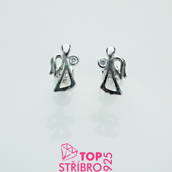 Elegantní stříbrné náušnice ve tvaru anděla jsou symbolem ochrany, čistoty a štěstí. Vyrobeny jsou z kvalitního stříbra ryzosti 925/1000 a povrchově upraveny rhodiováním, které zajišťuje vyšší odolnost proti poškrábání a dodává šperku dlouhotrvající lesk. Dominantou náušnic je třpytivý zirkon, který dodává jemnému andělskému motivu luxusní vzhled a krásně odráží světlo. Díky svému nadčasovému designu jsou náušnice vhodné jak pro každodenní nošení, tak i pro slavnostní příležitosti. Rozměr náušnic 7×11 mm. Zapínání na šroubek. Zboží dodáváno v naší originální krabičce.Rhodium dodává výrobku vzhled luxusního zboží podobný bílému zlatu a zároveň chrání stříbro před jeho přirozenou oxidací (tzv.zčernání).