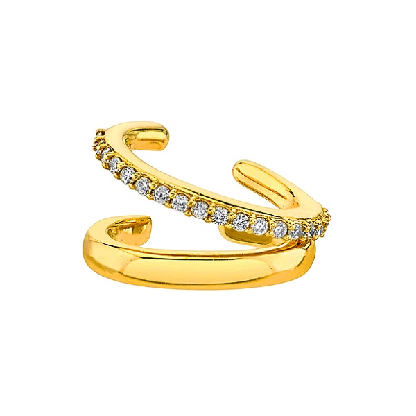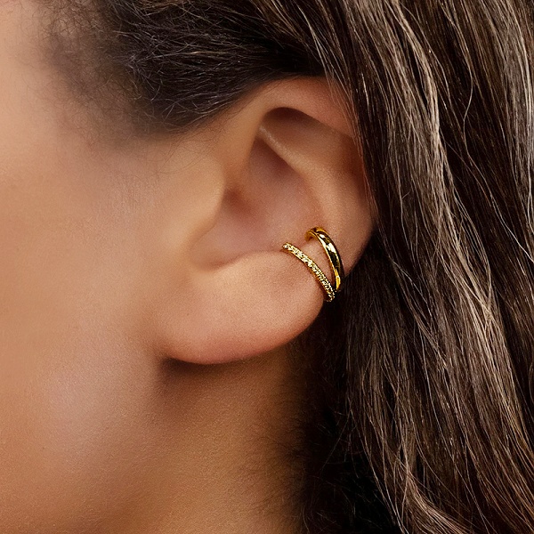 Elegantní zlacená stříbrná záušnice ryzosti 925/1000 v moderním designu, která zaujme svou dvojřadou strukturou osazenou třpytivými zirkony. Vyrobena z kvalitního stříbra. Nabízí luxusní vzhled a pohodlné nošení. Díky jemnému zpracování skvěle doplní každodenní outfit i slavnostní příležitosti. Průměr záušnice 17,5mm. Na uchu mírně domáčknete. Prodáváno po kuse, nejedná se o pár. Dodáváme v naší originální krabičce. Zlaceno 18kt zlatem.