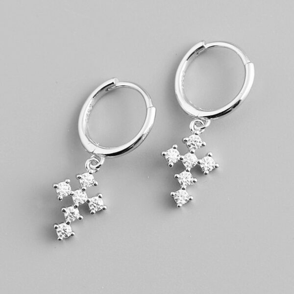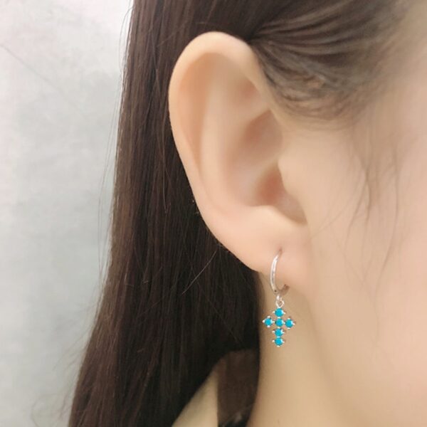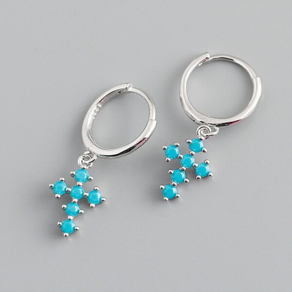 Stříbrné náušnice 925/1000 rhodiované kroužky s křížky a barevnými kamínky. Rozměr náušnic – křížek š. 8mm , v.12mm, průměr kroužku – 12mm, celková výška náušnice je 24mm včetně kroužku.. Zapínání na zaklapávací kroužek. Jednoduché a přitom stále elegantní náušničky. Zboží je dodáváno v naší originální krabičce. Rhodium dodává výrobku vzhled luxusního zboží podobný bílému zlatu a zároveň chrání stříbro před jeho přirozenou oxidací (tzv.zčernání).