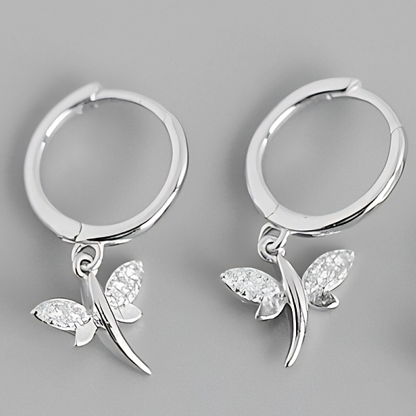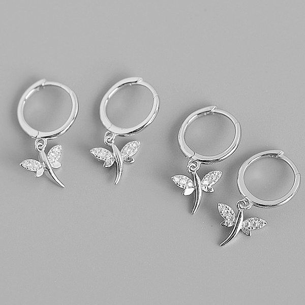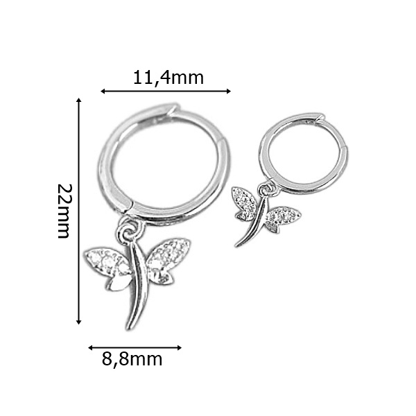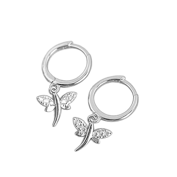 Stříbrné náušnice kroužky se zavěšenou vážkou osazenou zirkony