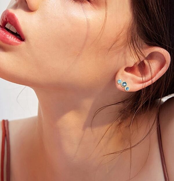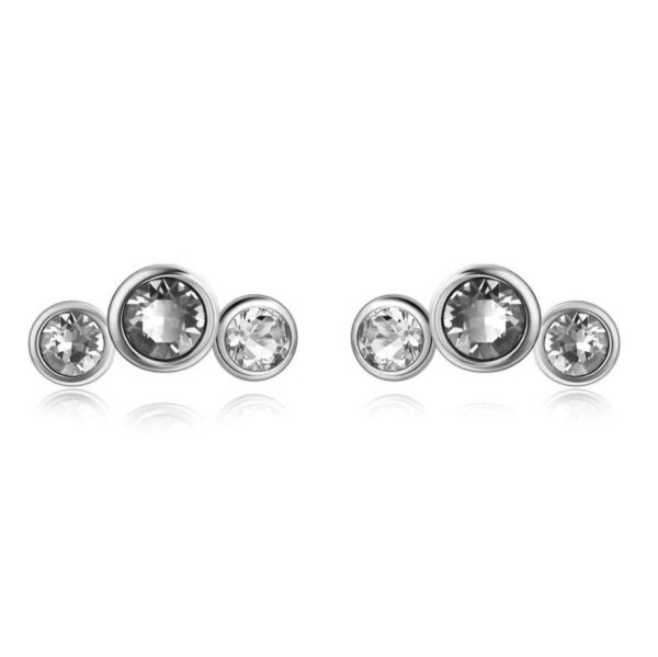 Stříbrné náušnice 925/1000 rhodiované, se třemi zirkony. Rozměr náušnic š.14mm a v. 6mm. Zapínání na šroubek. Foto je pouze ilustrativní – náušnice dodáváme nyní pouze v úpravě rhodiem s bílými nebo tmavě modrými kamínky. Zboží je dodáváno v naší originální krabičce. Rhodium dodává výrobku vzhled luxusního zboží podobný bílému zlatu a zároveň chrání stříbro před jeho přirozenou oxidací (tzv.zčernání).