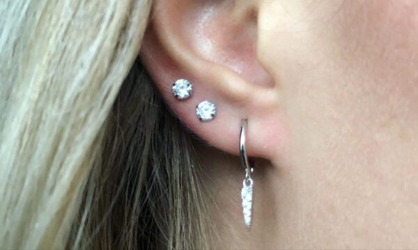 Stříbrné náušnice trojúhelník na kroužku se zirkony