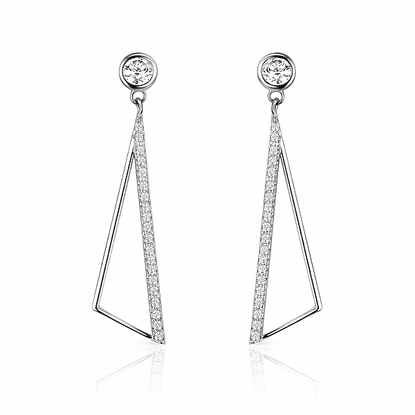 Stříbrné náušnice visací trojúhelníky se zirkonky