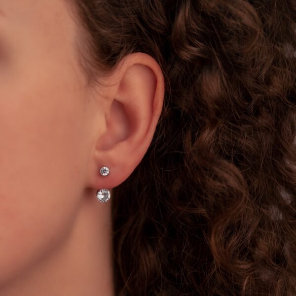 Stříbrné náušnice 925/1000 rhodiované – záušnice se zirkony. Lze použít i samostatně jako pecičky. Rozměr zirkonů Ø 4 a 6mm. Celková rozteč mezi kamínky 15mm . Zapínání na šroubek. Zboží je dodáváno v naší originální krabičce. Rhodium dodává výrobku vzhled luxusního zboží podobný bílému zlatu a zároveň chrání stříbro před jeho přirozenou oxidací (tzv.zčernání).