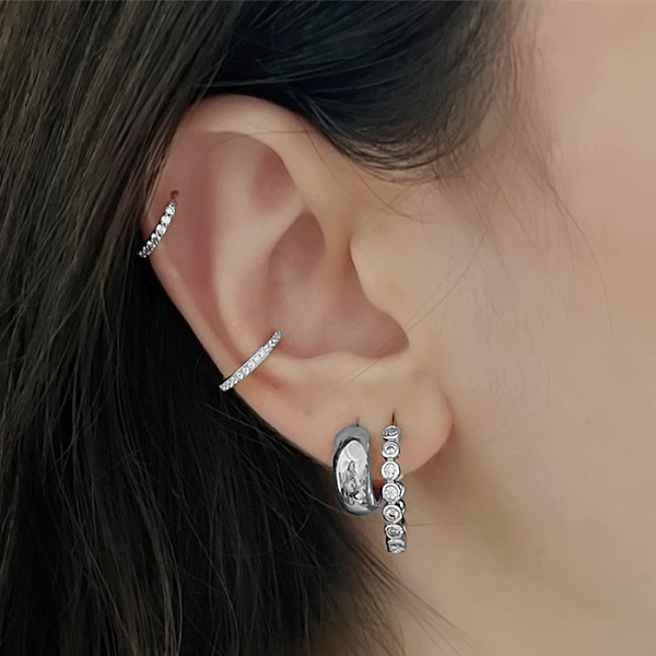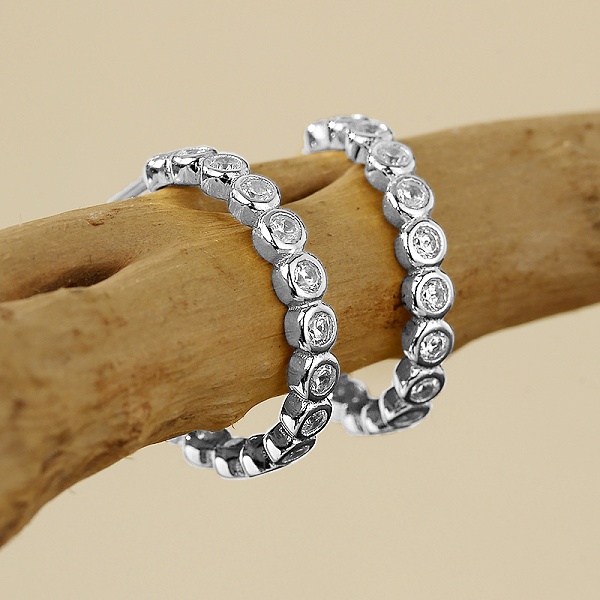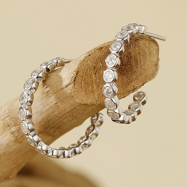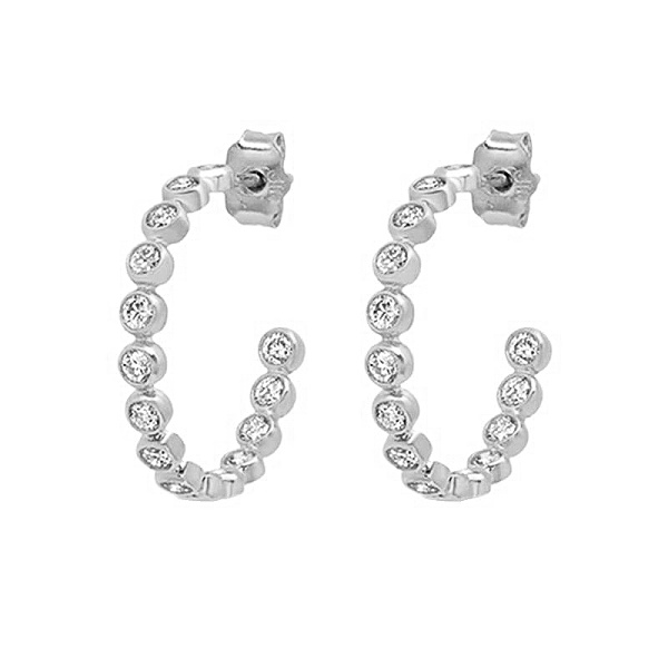 Stříbrné půlkruhové náušnice osazené kulatými zirkony