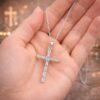 Tento nádherný velký stříbrný přívěsek ve tvaru kříže je nadčasovým symbolem víry, ochrany a elegance. Jemné provedení doplněné o třpytivé čiré zirkony dodává šperku luxusní vzhled a činí z něj ideální doplněk pro každodenní nošení i slavnostní příležitosti. Dominantním prvkem přívěsku je precizně zdobený kříž s jemně zasazenými zirkony, které se nádherně třpytí při dopadu světla. Tento šperk je nejen krásným módním doplňkem, ale také osobním symbolem víry, naděje a duchovní síly. Přívěsek je vyroben z kvalitního stříbra ryzosti 925/1000 a opatřen povrchovou úpravou rhodiováním, která zajišťuje vysoký lesk, dlouhou životnost a ochranu proti zčernání. Rhodiovaný povrch navíc připomíná bílé zlato a dodává šperku exkluzivní vzhled. Rozměr přívěsku š.22mm x v.32mm, celková výška přívěsu je 37,5mm včetně očka. !!! Řetízek není součástí dodávky !!! Dodáváme v naší originální krabičce.