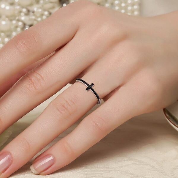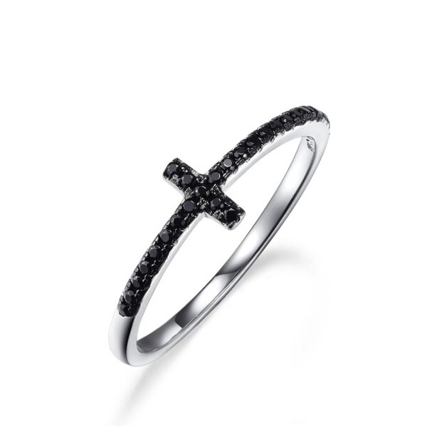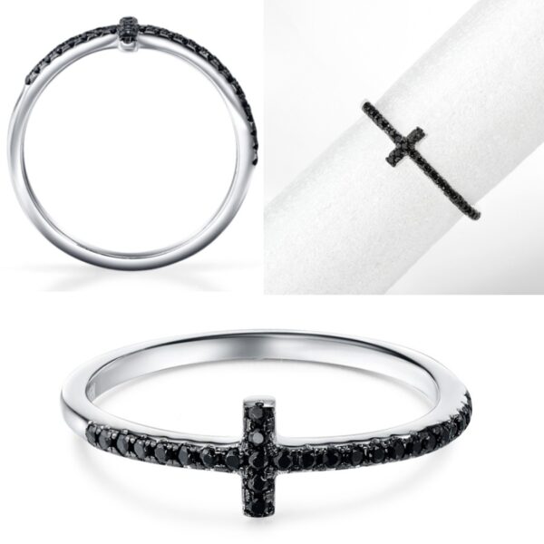 Stříbrný prstýnek 925/1000 rhodiovaný – křížek s černými zirkony. Opravdu pěkný, moderní a jemný prstýnek. V nabídce si vyberte požadovanou velikost. Prstýnek je dodáván v naší originální krabičce. Při objednání věnujte pozornost objednané velikosti. Tabulku, jak správně určit velikost naleznete zde. Rhodium dodává výrobku vzhled luxusního zboží podobný bílému zlatu a zároveň chrání stříbro před jeho přirozenou oxidací (tzv.zčernání).