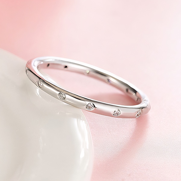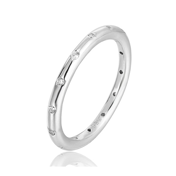 Stříbrný prsten kroužek dokola osazený čirými zirkony